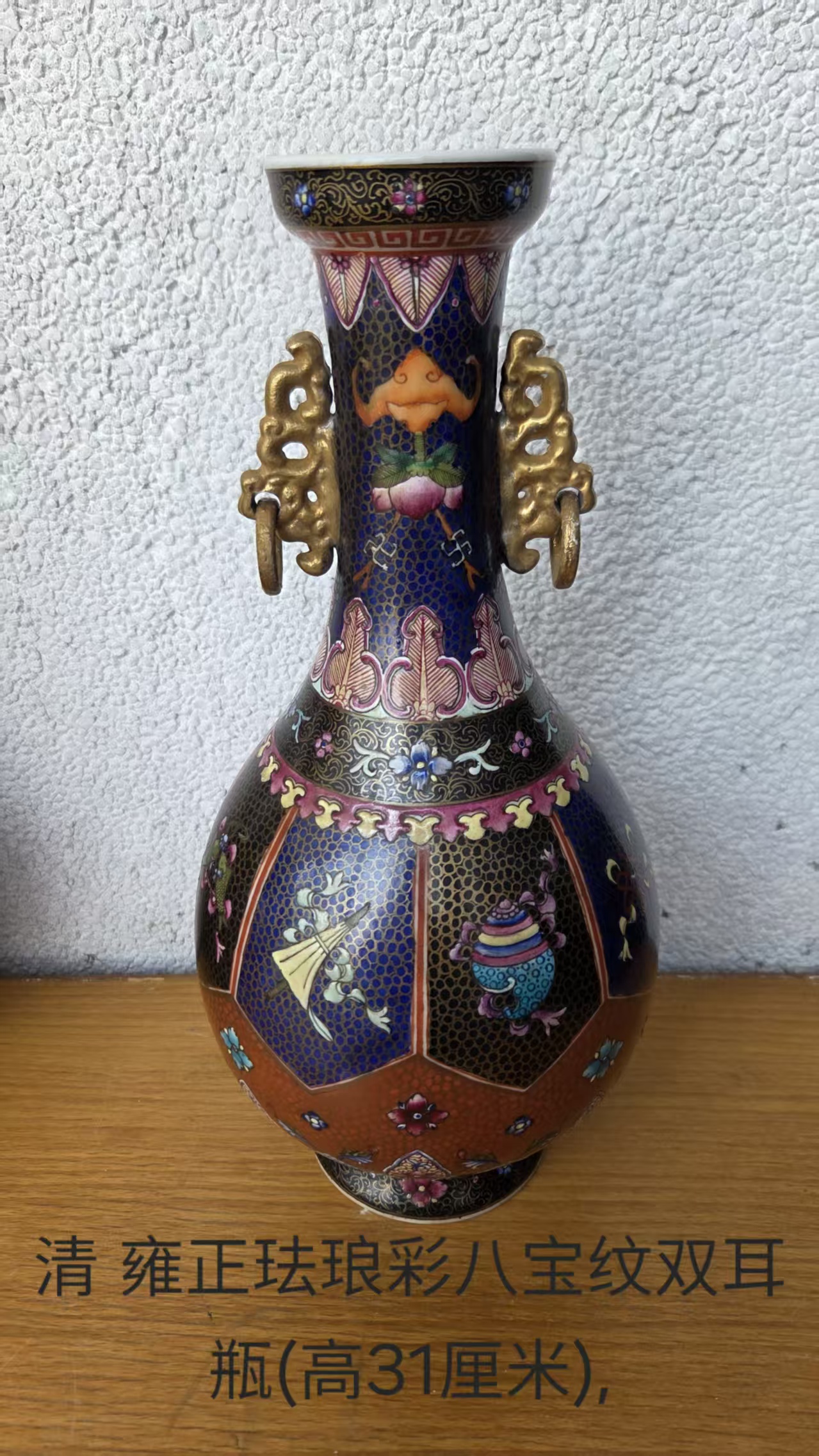 清雍正珐琅彩八宝纹双耳瓶(高 31 厘米)